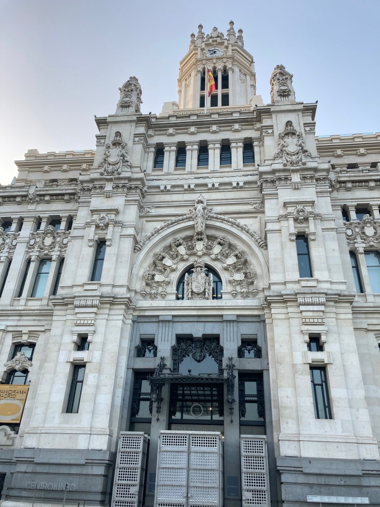 I arrived too late and shaken to really enjoy anything about being in Madrid. Several of my first options for a hotel were booked, so I wound up staying at a kind of hip, sort of expensive place – the kind that provides terry-cloth robes and slippers and your name on the TV when you arrive. The next morning, though, I had time to stroll along the Paseo del Prado past the Prado Museum and the Thyssen-Bornemisza Museum and the gorgeous old former post office at Plaza de Cibeles.