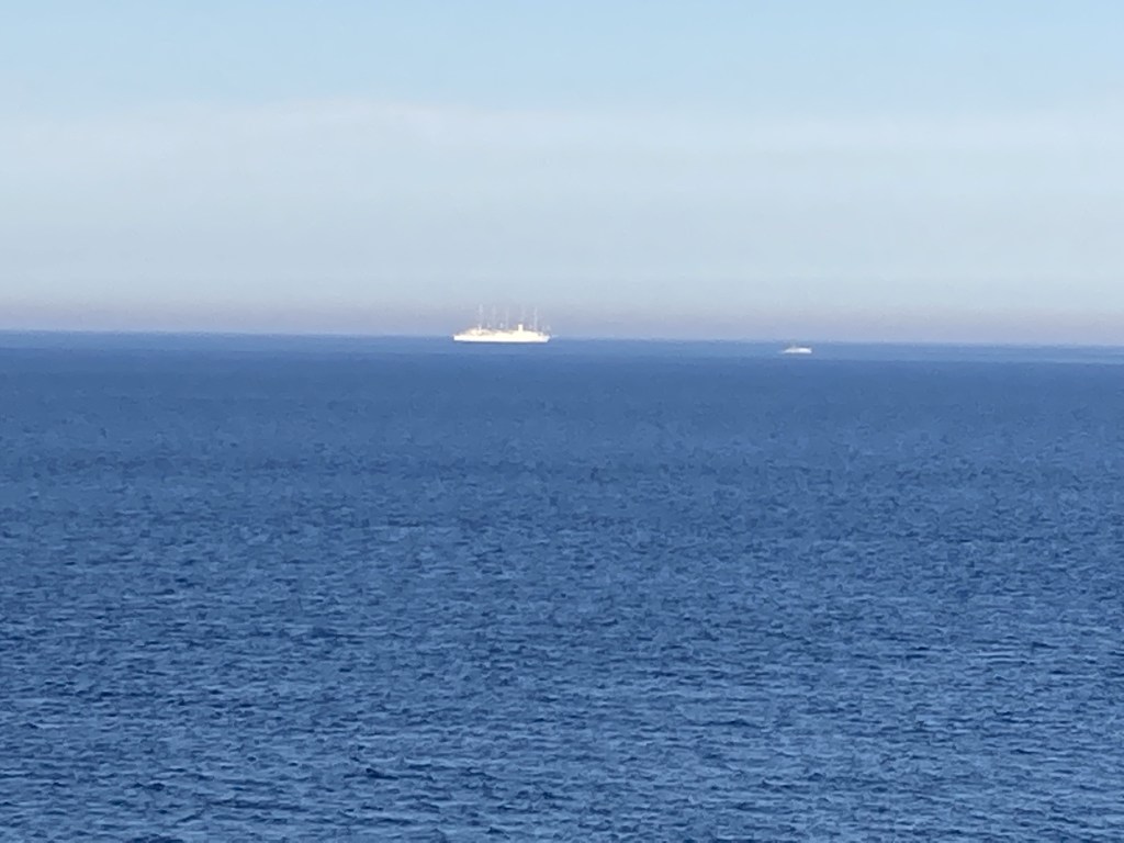 And then I saw what might be a Russian oligarch’s yacht passing by my apartment. It’s hard to see in this photo, and if I magnify it, it’s even blurrier, but believe me, it was a HUGE yacht. And the small boat in front of it appeared to be some sort of guard ship or escort. Could be…