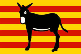 I’ve mentioned in the past that the donkey is a symbol of Catalunya. Seen on flags, tee shirts, bumper stickers, hats, and plenty of other places, the Catalan donkey is more than just a breed. The “ruc català,” as it’s known in Catalunya, is a larger than most donkeys, on par with the average height of horses. They are dark brown in color, with a distinctively characteristic white nose and belly. This species is known for being peaceful and strong-willed. They are hard-working, and they get the job done. They were known to carry loads of up to one hundred kilos and be three days on the road without drinking.