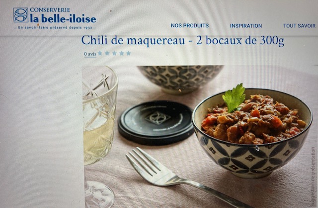 I get emails from a French food company, La Belle-Iloise, because I’ve ordered some products from them. They sell fancy canned tuna and sardines of various types. But, for you Texans, you’ll be glad to know that you can get a jar of your favorite “famous Texas recipe” for Mackerel Chili made of white beans and chunks of mackerel! Yum! Those french have got our number!