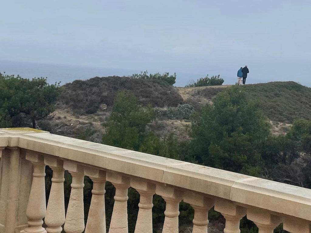 They don’t let camper vans park in the cul-de-sac by my apartments anymore, but there are still a lot of people who hike around the area, following the paths or “camins” first created by fishermen. Some of the camins are more difficult than others, through dense brush or on rocky paths or steep inclines. Others have been improved by the local government and are easy to navigate. There is a promontory just next to my apartment that seems to draw a lot of hikers to climb to the top for the view…my view! So, it’s not unusual for me to look out my window and see some strangers poking around on the point not far from me.